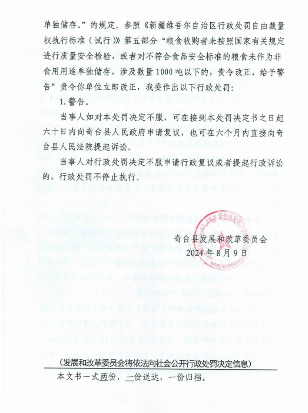 【行政处罚】奇台县发展和改革委员会行政处罚决定书4号
