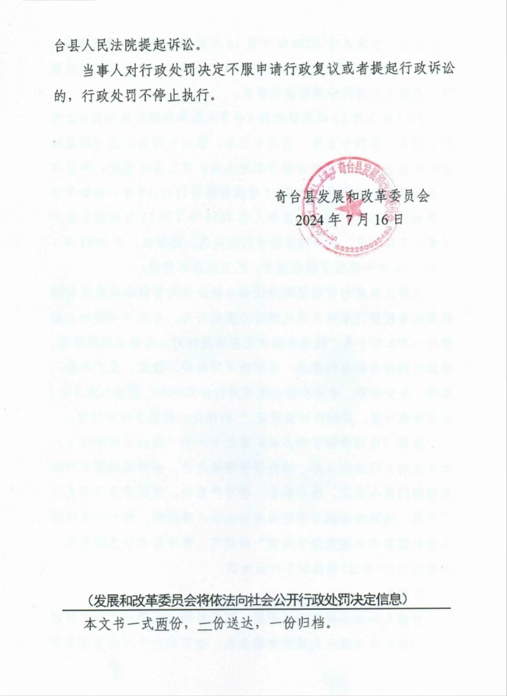 【行政处罚】奇台县发展和改革委员会行政处罚决定书3号