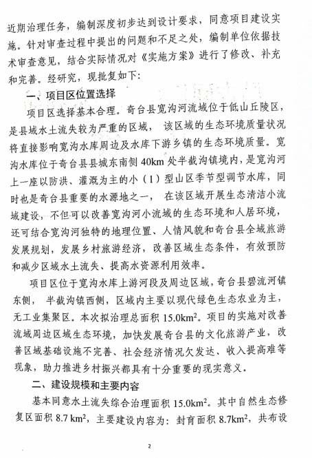 | 名 称 | 奇台县宽沟水库上游生态清洁型小流域综合治理工程实施方案的批复 | ||