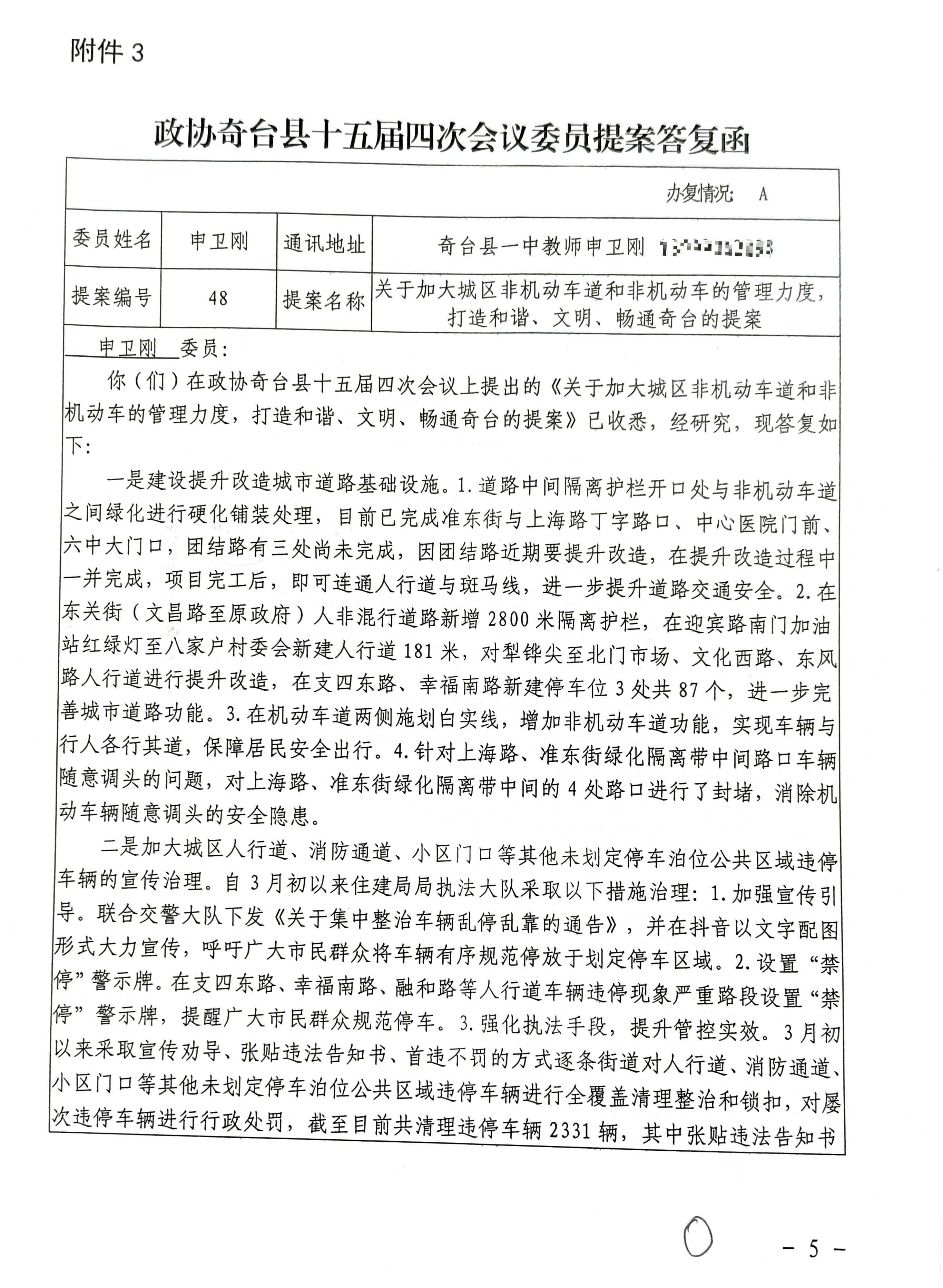 对政协奇台县十五届四次会议48号委员提案的答复函