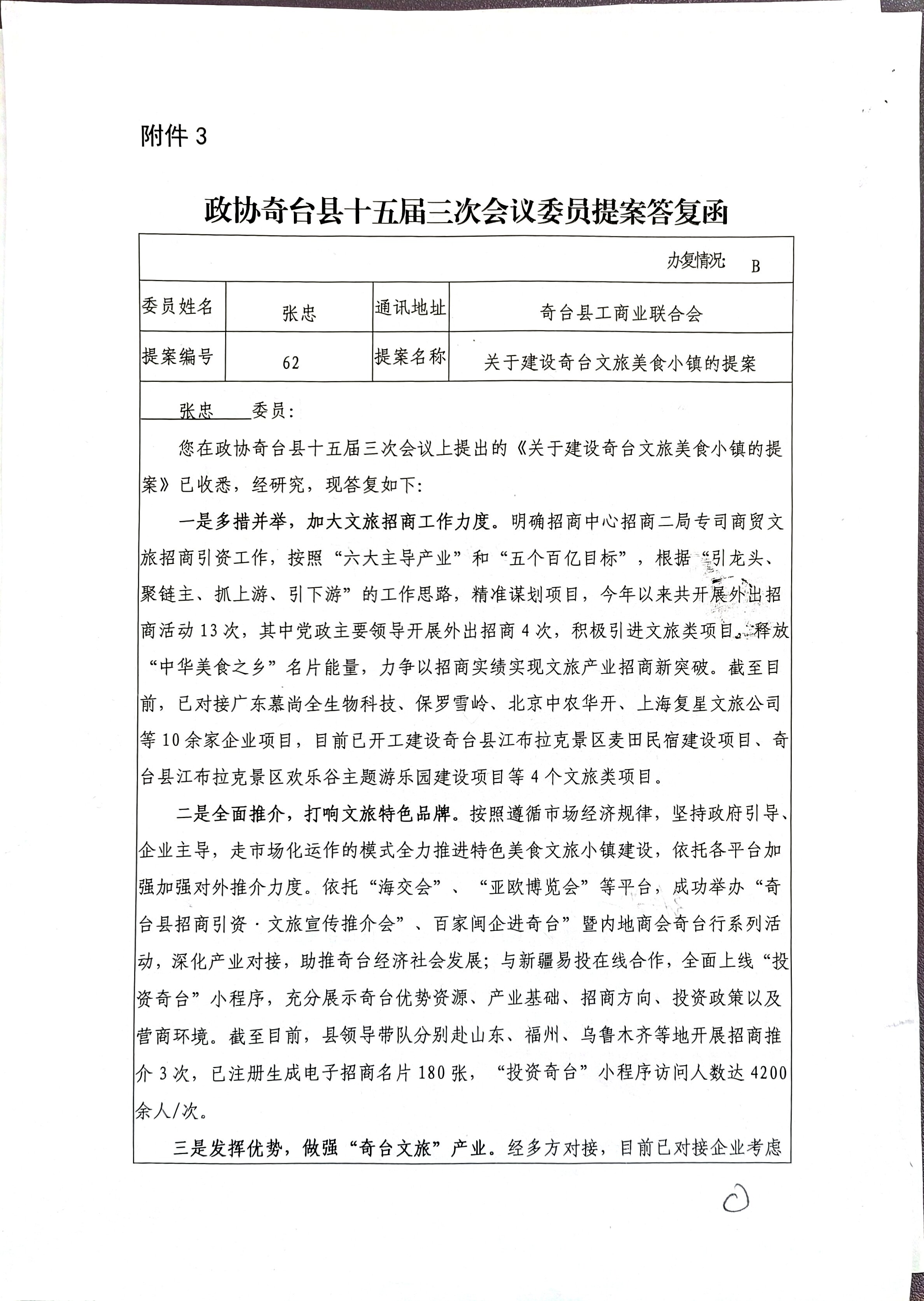 对政协奇台县十五届四次会议62号委员提案的答复函