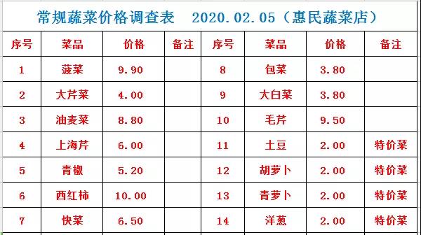 奇台县22个政府惠民店2月5日常规蔬菜价格