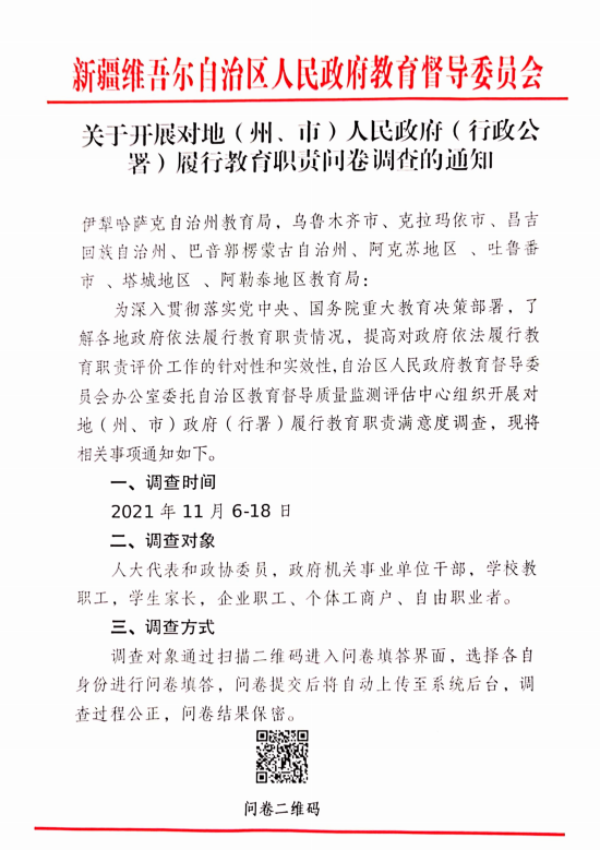关于开展对地(州、市)人民政府(行政公署)履行教育职责问卷调查的通知